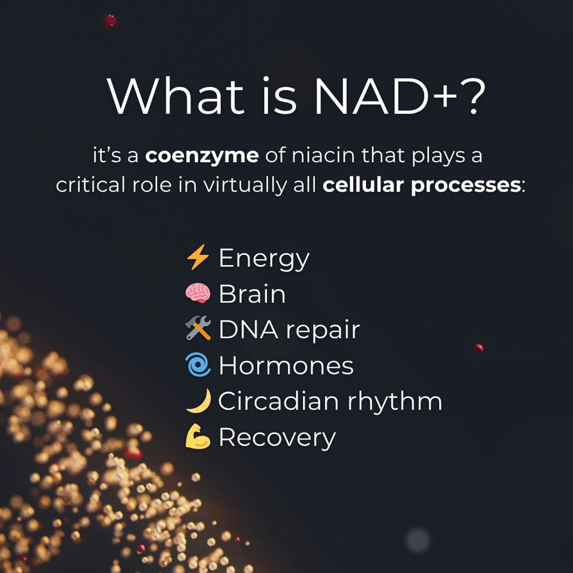 ✅ Cellular Energy & Repair – NAD+ fuels mitochondria, supporting energy production, antioxidant protection, and tissue regeneration